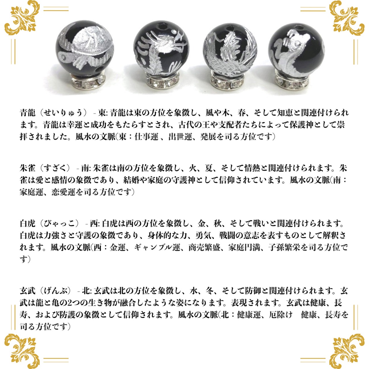 ご覧頂いているブレスレットは、四神獣金彫オニキスとブルータイガーアイを組み合わせたブレスレット。守り神である四神とパワーストーンの組み合わせで運気の流れを引き寄せる強運ブレスレットです。シンプルなデザインで男女問わず、年齢問わずご使用頂けるデザインなっております。シンプルなデザインは日常のアクセントとして、仕事やビジネスカジュアル、パーティーや特別なイベントなど様々なシーン活用できます。また、ちょっと贈り物にも最適なブレスレットになっております。四神獣を身につけて厄災から身を守り、多くの運気を呼び込まれてください。