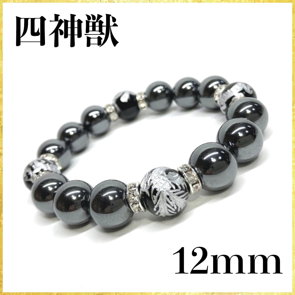 12mm 四神獣金彫オニキス×ヘマタイト パワーストーン ブレスレット天然石 運気上昇 開運 健康運 厄払い お守り 青龍 白虎 玄武 朱雀 SL