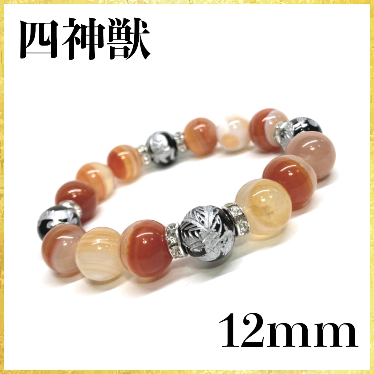 12mm 四神獣金彫オニキス×カーネリアン・サードニクス パワーストーン ブレスレット天然石 レッド天眼石 お守り 青龍 白虎 玄武 朱雀 SL