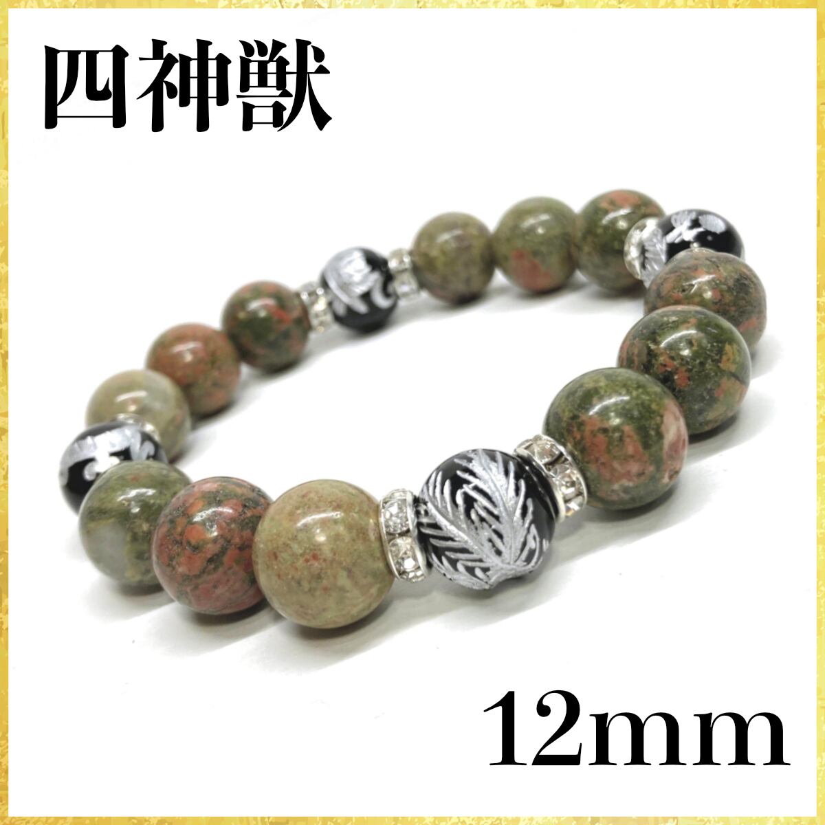 12mm 四神獣金彫オニキス×ユナカイト パワーストーン ブレスレット天然石 運気上昇 開運 健康運 お守り 青龍 白虎 玄武 朱雀 SL