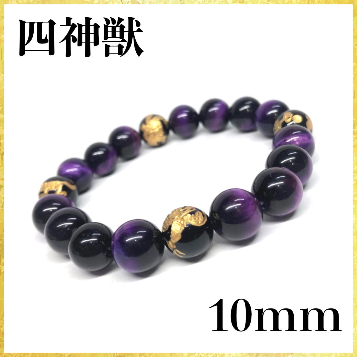 10mm 四神獣金彫オニキス×パープルタイガーアイ パワーストーン ブレスレット天然石 運気上昇 開運 金運 お守り 青龍 白虎 玄武 朱雀