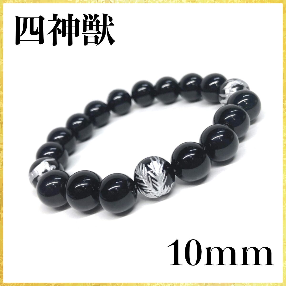 10mm 四神獣銀彫オニキス×オニキス パワーストーン ブレスレット天然石 運気上昇 開運 金運 恋愛運 お守り 青龍 白虎 玄武 朱雀 シンプル