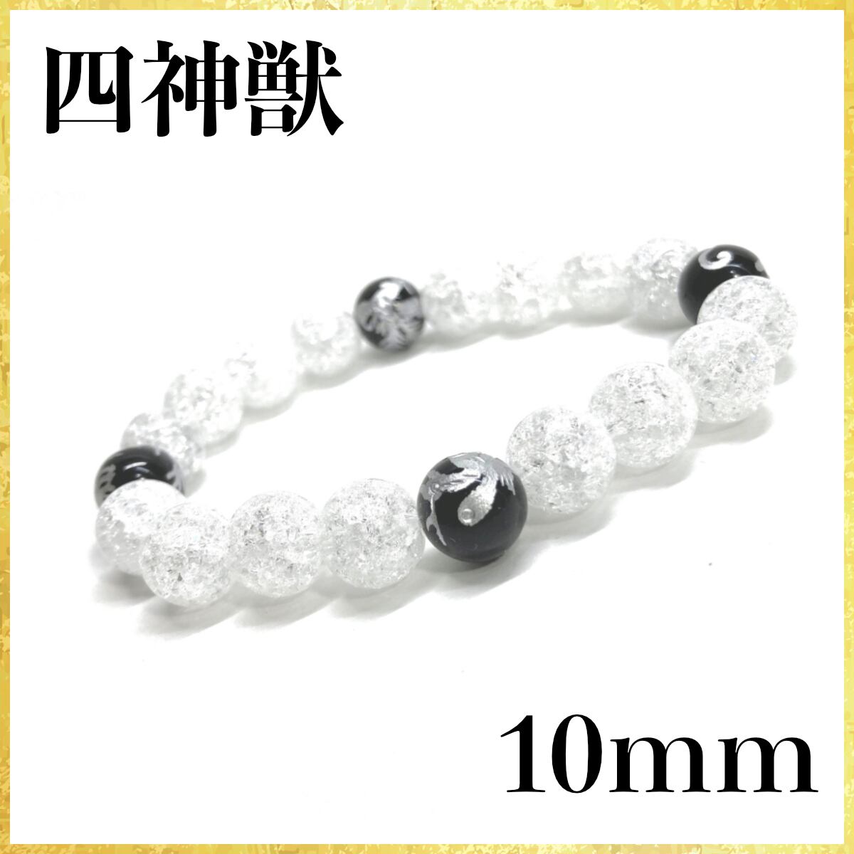 10mm 四神獣銀彫オニキス×クラック水晶 パワーストーン ブレスレット天然石 運気上昇 開運 金運 恋愛運 お守り 青龍 白虎 玄武 朱雀