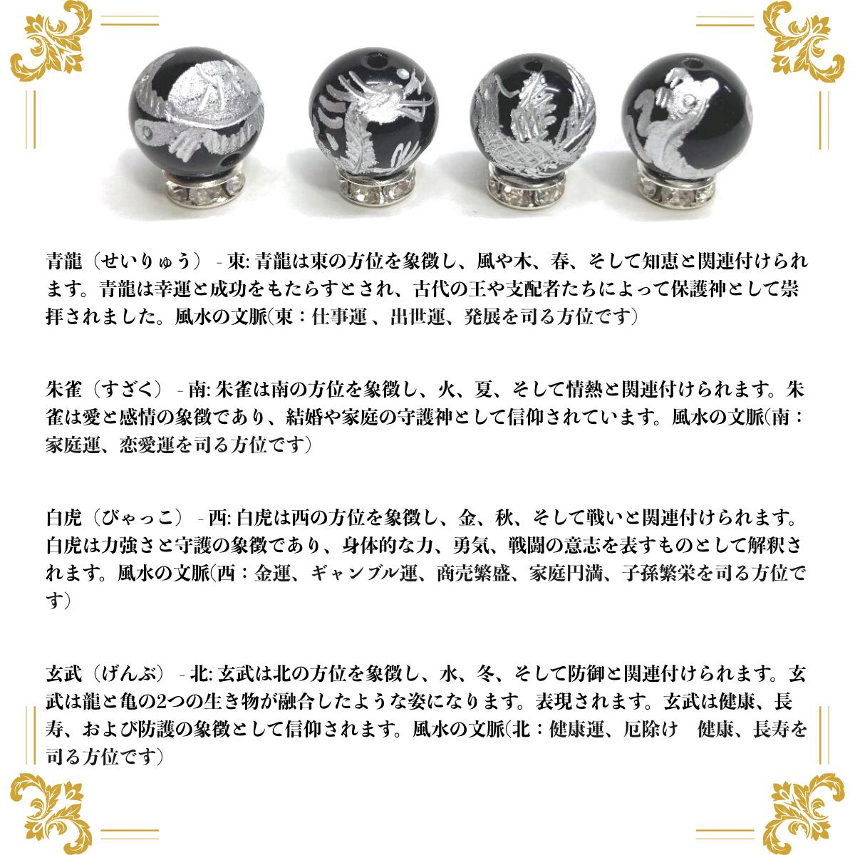 10mm 四神獣銀彫オニキス×アクアマリン パワーストーン ブレスレット天然石 運気上昇 開運 幸運 恋愛運 お守り 青龍 白虎 玄武 朱雀