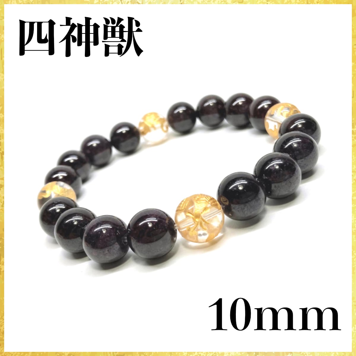10mm 四神獣金彫水晶×ガーネット パワーストーン ブレスレット天然石 運気上昇 開運 金運 恋愛運 お守り 青龍 白虎 玄武 朱雀
